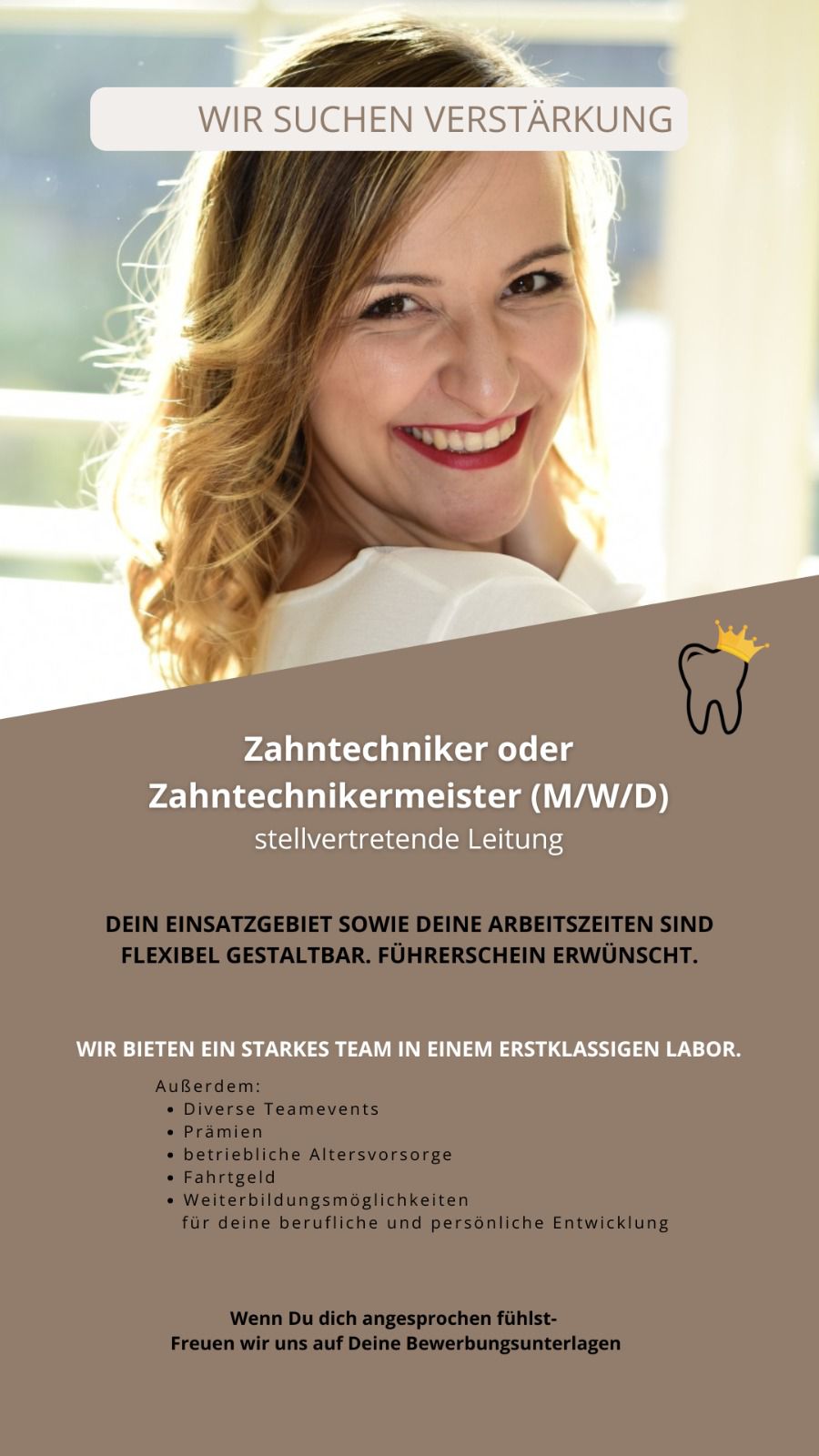 Mit dem gleichen Team wollen wir weiterhin hochqualitativen Zahnersatz für Sie herstellen.